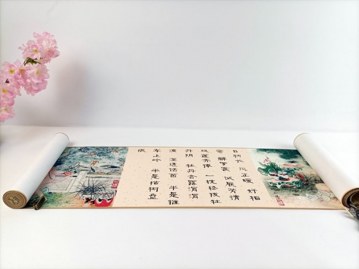 在家居单调的墙壁上悬挂一幅漂亮的书画作品,会给人一种古色古香,端庄雅致的感觉。闲暇时坐下仔细品味,书法的隽永含蓄、笔法飘逸妩媚;绘画的幽雅精美,装裱工整富丽,无不使人心旷神怡。